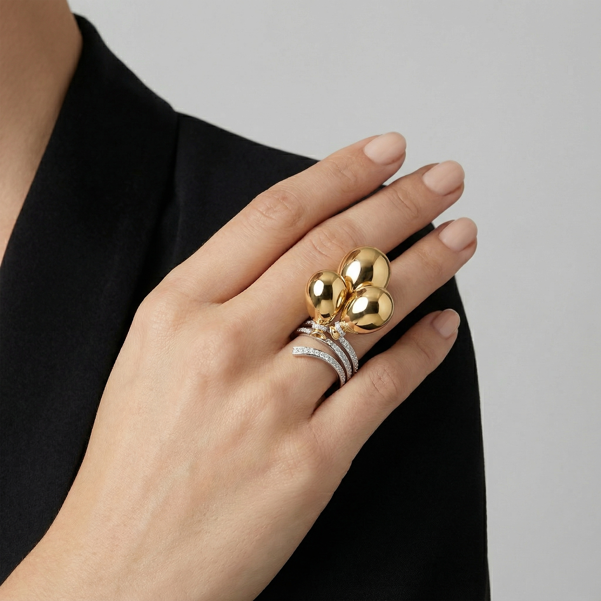 Designed to be noticed yet worn with ease, this diamond balloon ring brings effortless sophistication to both everyday styling and special occasions. It pairs perfectly with minimalist looks, eveningwear, or layered jewellery for a confident, fashion forward statement.