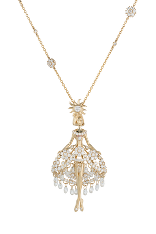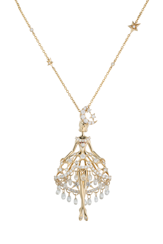 Night Fairy in yellow gold touched with white diamonds. She carries the stillness of night and the quiet mystery that settles when the world falls silent.