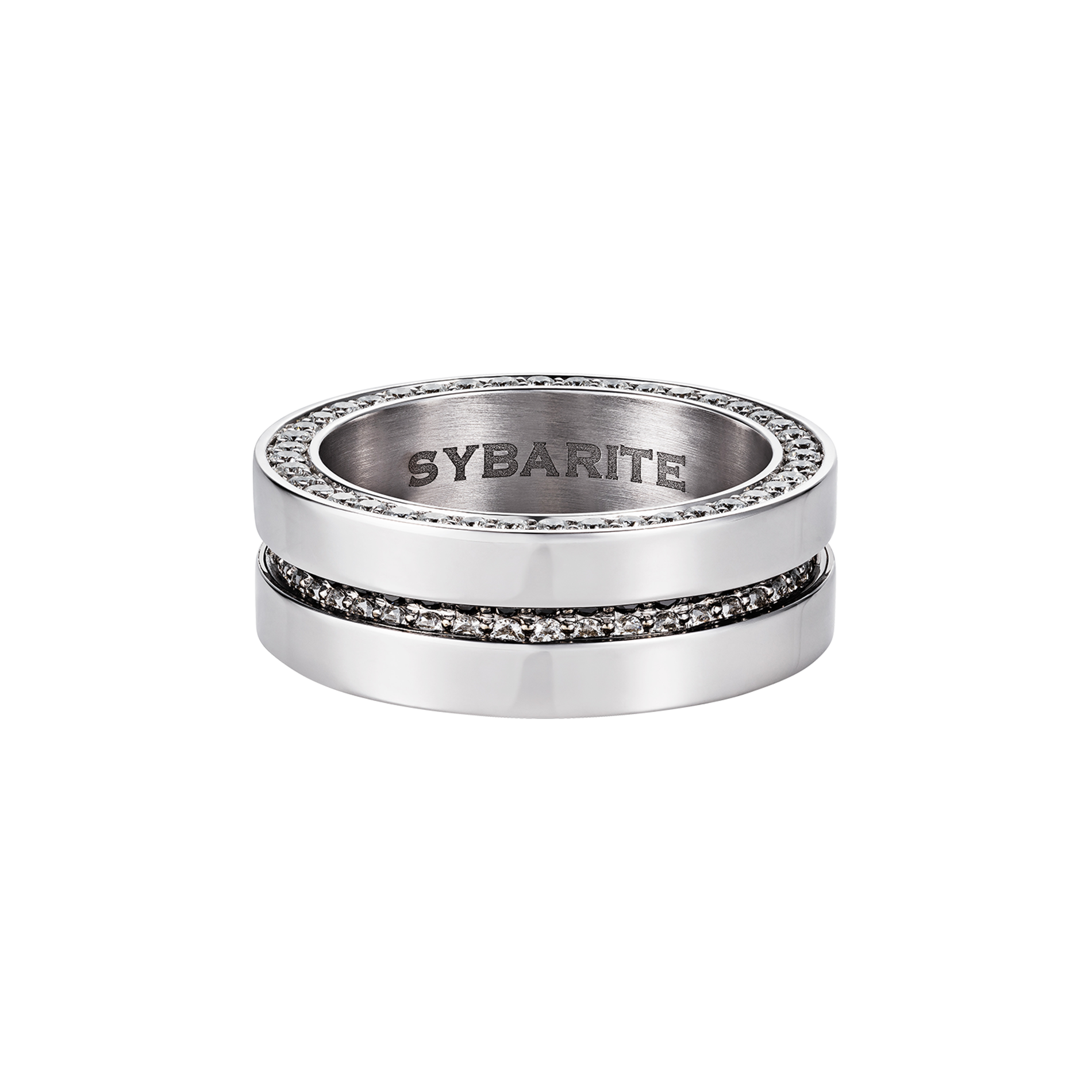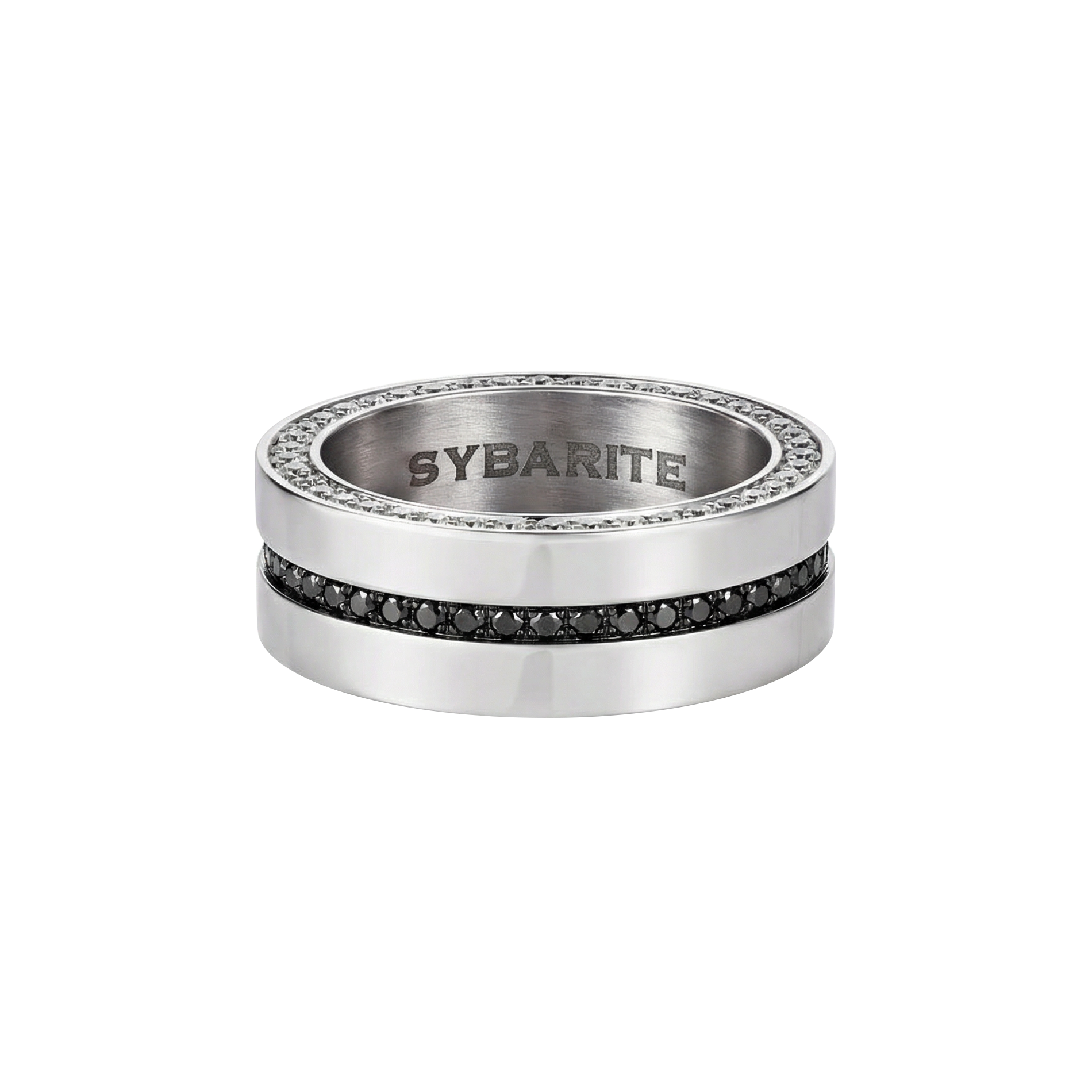 The white diamonds reflect clarity and precision, offering a clean and timeless look. Rotate the band and the black diamonds emerge, bold and enigmatic, changing the mood entirely. This dual design makes the ring adaptable to both day and night, formal and understated, classic and contemporary.
