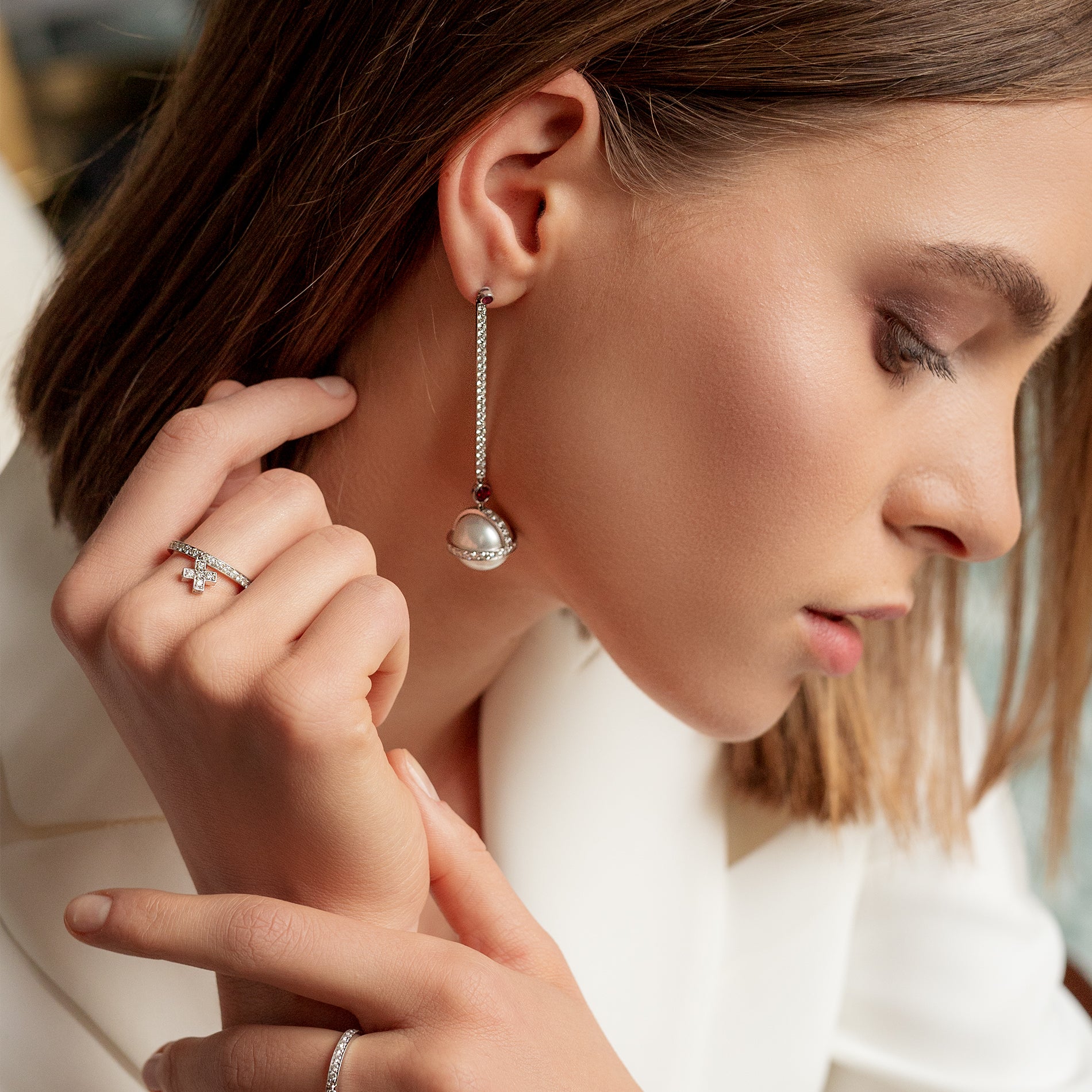 White diamonds form a striking cross motif, bringing exceptional brilliance and light to the ring. Their sparkle highlights the clean lines and balanced proportions, creating a piece that feels both meaningful and contemporary. The result is a powerful yet sophisticated statement that transcends trends.