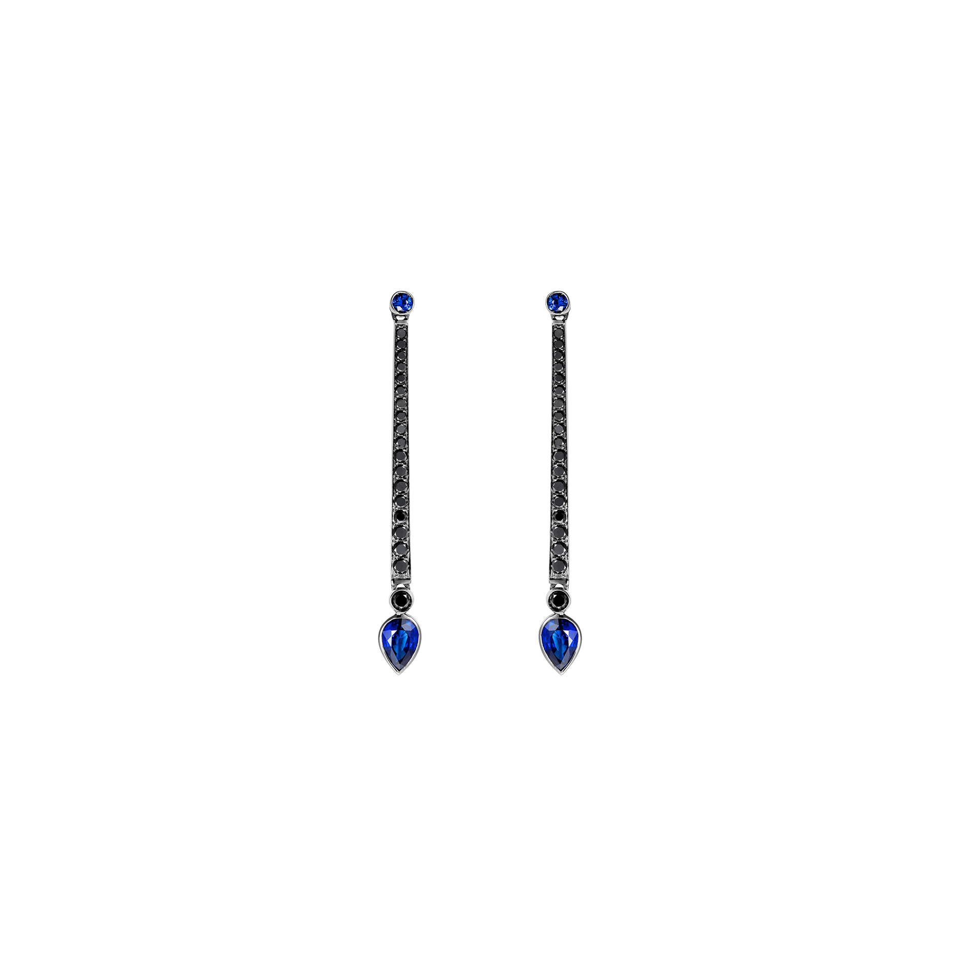 A total of 1.05 carats of black diamonds bring depth and intensity, while 1.91 carats of sapphires add a striking touch of colour. Two perfectly matched pear shaped sapphires, each 0.95 carats, form the heart of the design, symbolising poise and harmony.