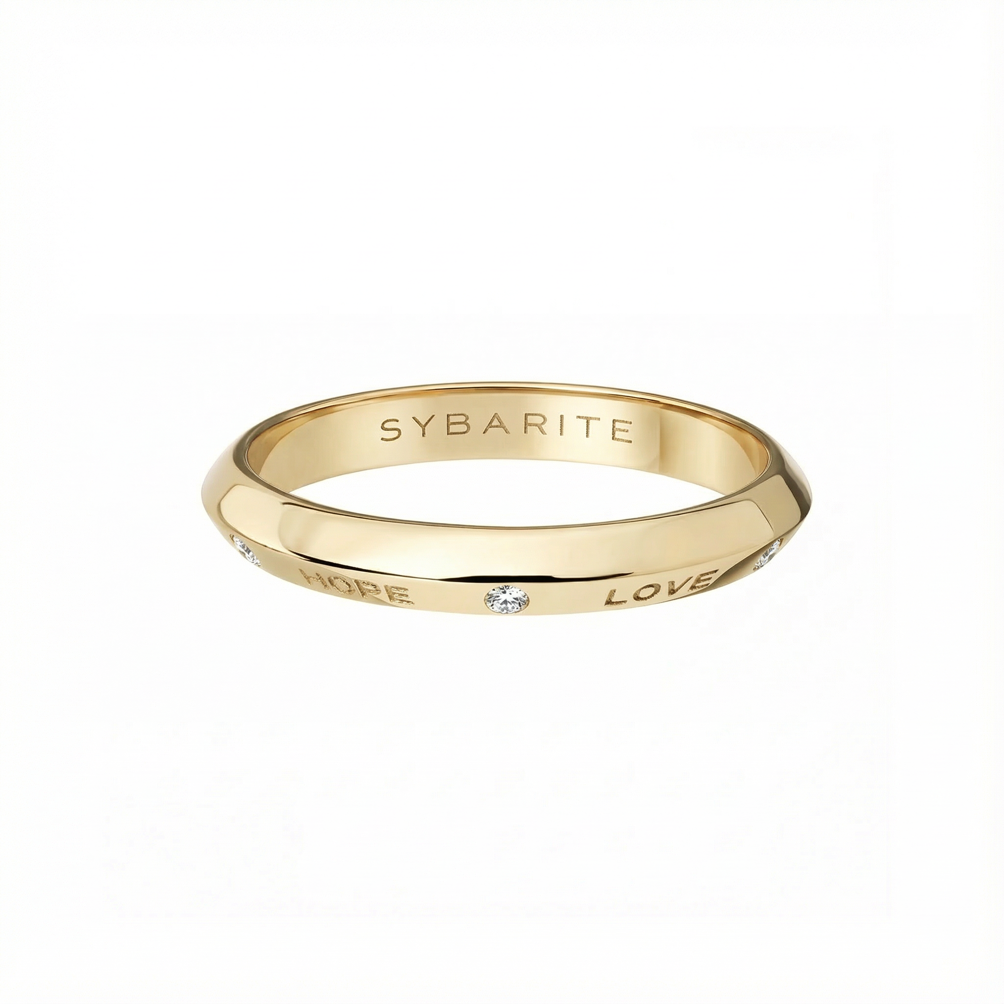 Radiant and full of meaning, the Fortune Love Hope band ring in 18K yellow gold is a timeless expression of warmth and optimism. Crafted from rich 18K yellow gold and weighing 2.89 grams, this elegant piece glows with a classic golden hue that never goes out of style.