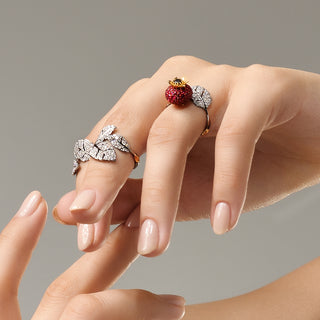 Chaque création de la collection, qu'il s'agisse d'une boucle d'oreille ou d'une bague, est réalisée avec un savoir-faire exceptionnel. Pétales et feuilles scintillent de détails complexes, évoquant la grâce de la nature à travers des pierres serties à la main et un travail d'orfèvrerie magistral.