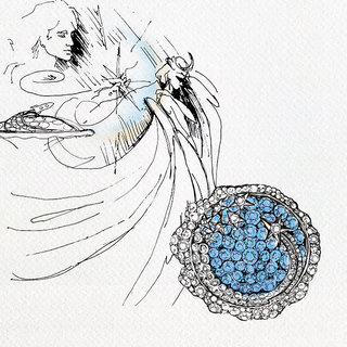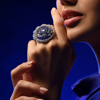 Gaze upon the mysteries of the universe as a shooting diamond star soars through the deep blue sapphires of the night sky. Featuring glittering gemstones set into a white gold ring, with a sweep of your hand, the ring’s secret is revealed – the diamond star appears to move through the inky sapphire heavens, while a fixed outer circle of dazzling diamond stars witness its beauty.